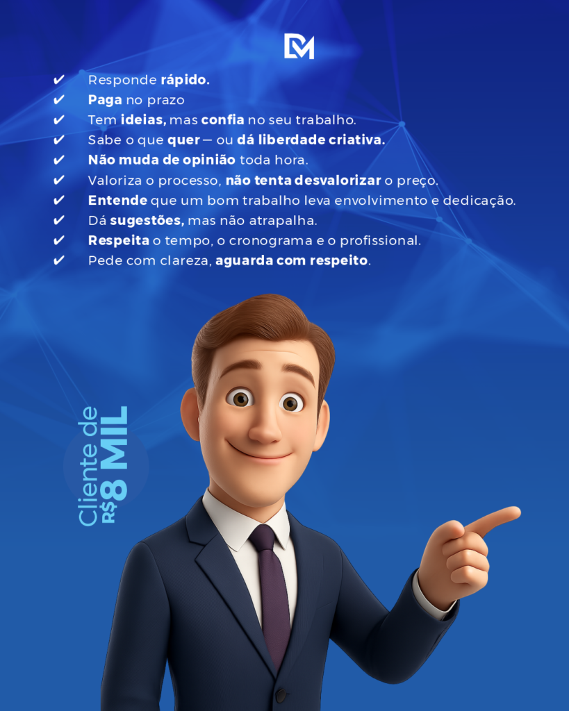 Esse tipo de cliente investe com visão de longo prazo, compreende que comunicação é construção — e não mágica. Por isso, colhe resultados sólidos.